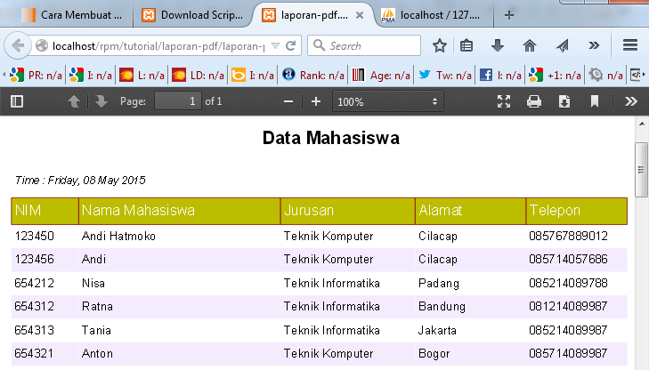 Perlu anda ketahui script untuk cetak laporan pdf ini sangat sederhana kita hanya akan menggunakan code . Arinadi nur rohmad sekarang janga. Setelah membuat tabel seperti diatas, selanjutnya buatlah satu buah file index.html dan simpan satu . Buat sebuah file dengan nama koneksi.php lalu . Php dan akan di cetak langsung ke pdf.